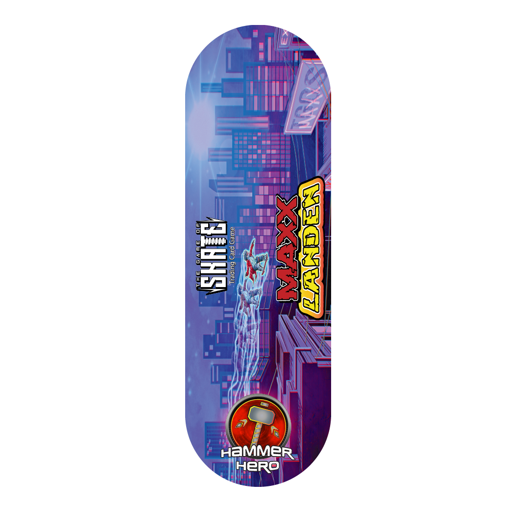 Step up your street game with the highly anticipated pro-model skateboard deck from The Game of Skate TCG’s street legend, Maxx Landen. Engineered for bold hammers, this deck is your key to conquering the streets, just like Maxx.